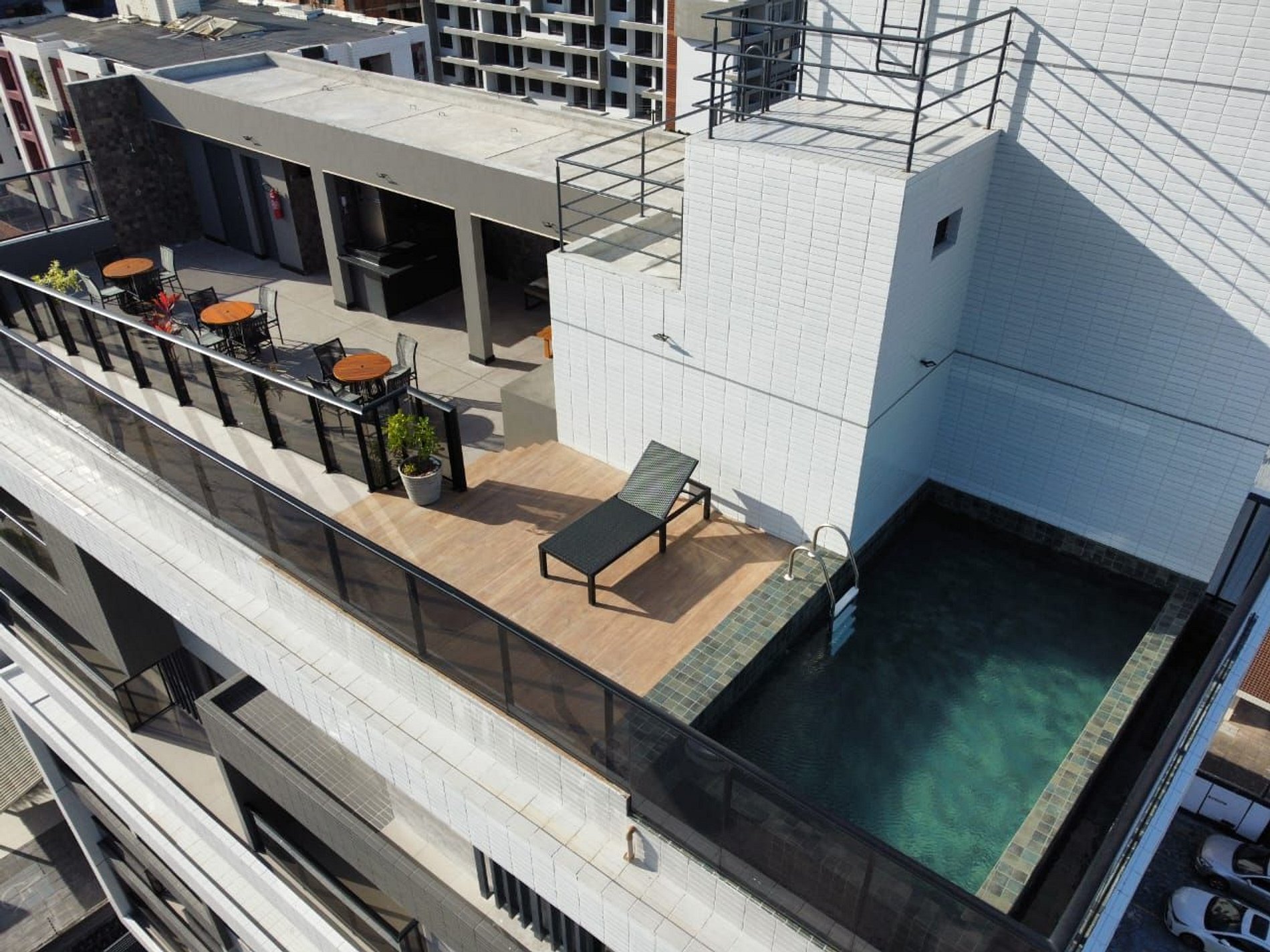 No terraço, localizado no sétimo andar, você encontrará uma área de lazer incrível com vista para o mar da Praia de Manaíra e para a cidade. Esse espaço conta com uma piscina de uso comum e uma área gourmet que pode ser utilizada por todos os hóspedes.