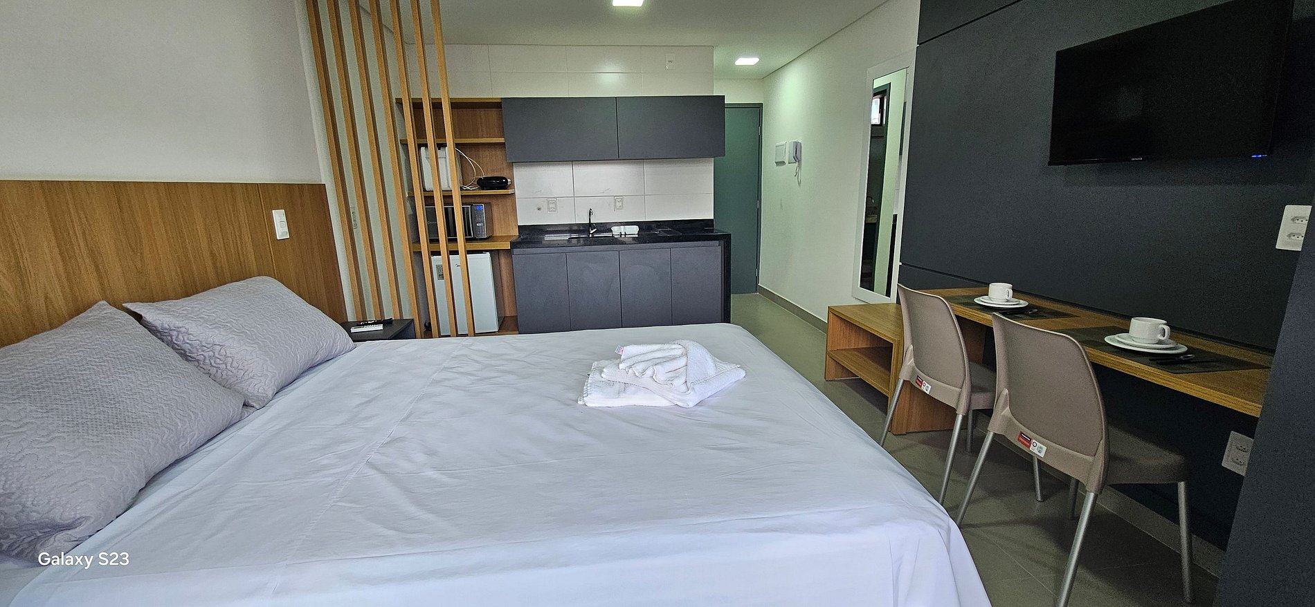 Todos os flats do Tramonto foram pensados para oferecer praticidade em um ambiente integrado e funcional, com enxoval básico no padrão de hotelaria, incluindo lençóis, toalhas e travesseiros. Não fornecemos edredons nem toalhas de praia, mas nossa equipe estará sempre à disposição para qualquer necessidade adicional, garantindo uma experiência tranquila.