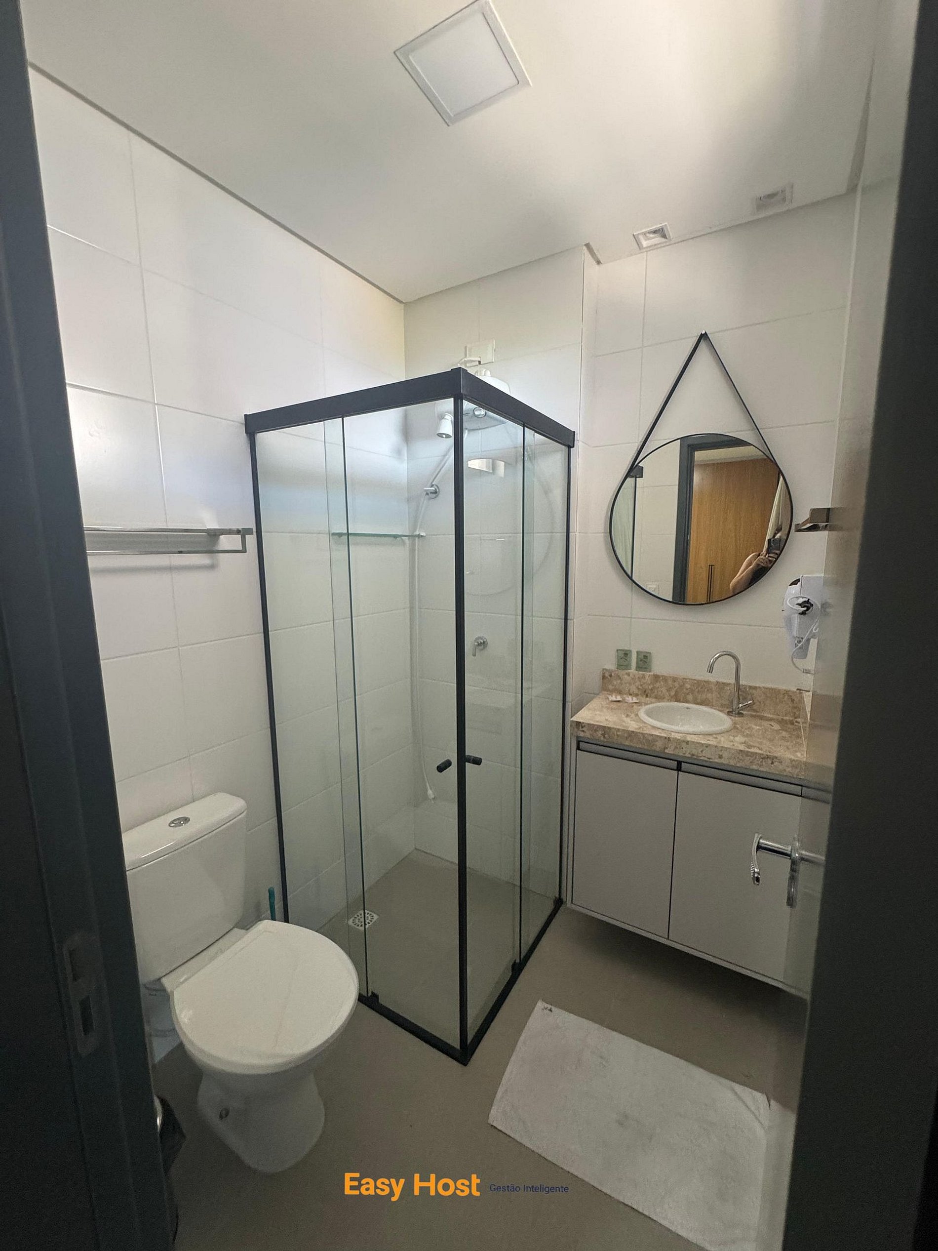 O condomínio ainda oferece garagem rotativa com vagas sujeitas à disponibilidade no momento da chegada. Por normas internas, apenas hóspedes cadastrados têm acesso às unidades, mas visitas são permitidas nas áreas comuns.